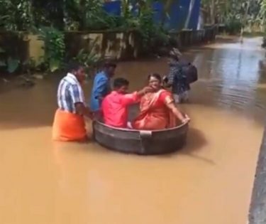 O nuntă mai puțin obișnuită a avut loc în India. Un cuplu a ajuns la ceremonia pentru nuntă cu ajutorul unei oale de gătit de dimensiuni imense, plutind pe străzile inundate din Kerala. Cei doi au intrat în oala de gătit, fiind trași pe apă …