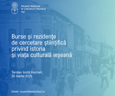 Muzeul Național al Literaturii Române Iași și Asociația „Patrimoniu pentru comunitate” Iași anunță apelul la candidaturi în cadrul proiectului Burse și rezidențe de cercetare științifică „Junimea” privind istoria și viața culturală ieșeană, ediția a IX-a. Proiectul încurajează cercetarea științifică pe un subiect legat de istoria culturală …