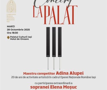 Sub cupola impunătoare a Palatului Culturii, muzica se pregătește să devină din nou poveste. Azi, de la ora 18:30, Opera Națională Română din Iași invită publicul la „Concert la Palat”, un eveniment aniversar dedicat pianistei și maestrului corepetitor Adina Alupei, o prezență discretă, dar esențială în …