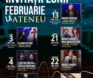 În luna februarie 2025, Ateneul Național din Iași va deveni scena unor evenimente deosebite, reunind artiști din diverse domenii ale culturii. Publicul va avea ocazia să asiste la spectacole de excepție cu invitați speciali din lumea teatrului, precum Maia Morgenstern, Marius Manole, Claudiu Bleonț și …