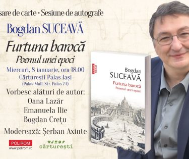 vezi stireaBogdan Suceavă, „Furtuna barocă. Poemul unei epoci”: lansare de carte la Cărturești Palas Iași