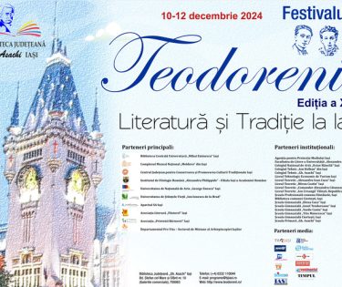Biblioteca Județeană „Gh. Asachi” Iași organizează în zilele de 10, 11 și 12 decembrie 2024, ediția a X-a a Festivalului „Teodorenii”. Ediția din acest an se va desfășura sub genericul Literatură și Tradiție la Iași. Beneficiind de generosul patronaj al Teodorenilor, ediția din acest an …