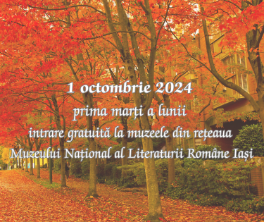 vezi stireaMarți, 1 octombrie 2024, vizitatorii se pot bucura de acces gratuit la toate muzeele din rețeaua Muzeului Național al Literaturii Române Iași