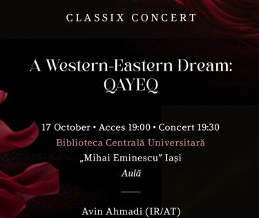 Vineri, 17 octombrie 2025, Aula Bibliotecii Centrale Universitare „Mihai Eminescu” din Iași găzduiește un nou concert Classix – A Western–Eastern Dream: QAYEQ. Evenimentul aduce împreună tradiția persană și improvizația jazzului occidental, într-o seară de muzică delicată și emoționantă. Tânăra artistă iraniană Avin Ahmadi, stabilită la …