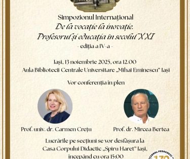 Colegiul Național Pedagogic „Vasile Lupu” din Iași marchează 170 de ani de la prima atestare documentară printr-o serie de evenimente, deschise anul acesta cu Simpozionul Internațional „De la vocație la inovație. Profesorul și educația în secolul XXI”. Evenimentul reunește profesori din învățământul preuniversitar și universitar, …