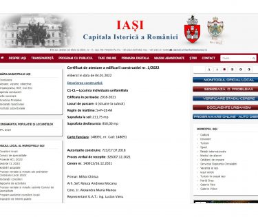 În urma unor propuneri venite de la ieșeni (pe rețelele de socializare și în mass-media), s-a decis ca și certificatele de atestare a edificării să fie publicate online, pe site-ul Primăriei Municipiului Iași (www.primaria-iasi.ro). Vor fi publicate toate datele permise de lege, cu excepția numelui …