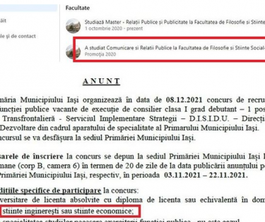 La Primăria Iași, în urma unui concurs pentru un post de consilier clasa I grad debutant la Biroul Cooperare Transfrontalieră – Direcția Generală Tehnică și Dezvoltare din cadrul aparatului de specialitate al Primarului, desfășurat în decembrie 2021, locul a fost ocupat de fiica unei șefe …