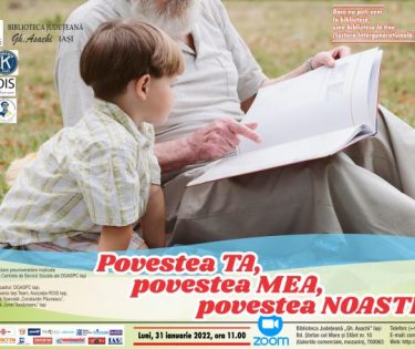 Luni, 31 ianuarie 2022 între orele 11 și 13 pe Zoom, Biblioteca Județeană „Gh. Asachi” Iași lansează a V-a ediție a Proiectului educațional terapeutic: Dacă nu poți veni la bibliotecă, vine biblioteca la tine! (Lectura Intergenerațională Terapeutică). Durata de implementare a proiectului vizează opt luni, …