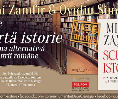 Joi, 9 decembrie 2021, ora 19.00, pe paginile de Facebook Polirom și Librăria Humanitas de la Cișmigiu, Mihai Zamfir va intra în dialog cu Ovidiu Șimonca pornind de la volumul Scurtă istorie. Panorama alternativă a literaturii române, apărut de curând la Polirom, ediția a II‑a …