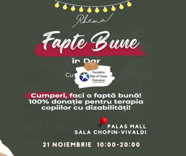 Duminică, 21 noiembrie 2021, Târgul Faptelor Bune face un popas la Palas, alături de conferința femeilor din Rhema. Ieșenii au ocazia să ajute copiii sprijiniți de fundația Star of Hope, în timp ce își pregătesc cadourile pentru cei dragi. „Beți cafeaua împreună cu noi! Începând …