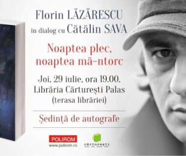Joi, 29 iulie, începând cu ora 19.00, la Librăria Cărturești Palas Iași (pe terasă), Florin Lăzărescu va intra în dialog cu Cătălin Sava, pornind de la romanul Noaptea plec, noaptea mă-ntorc, apărut de curând la Editura Polirom. Dialogul va fi urmat de o ședință de autografe. …