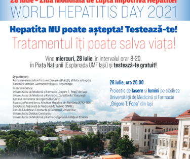 În data de 28 iulie este marcată anual ca Ziua mondială de luptă împotriva hepatitei. Cu această ocazie puteți să beneficiați de testarea la virusul hepatitic care se va efectua, gratuit, miercuri 28 iulie, între orele 8.00 și 20.00, în Piața Națiunii – Esplanada UMF …