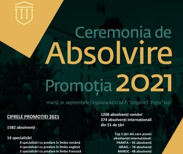 După încă un an marcat de pandemie, cei 1.582 de absolvenți ai Universității de Medicină și Farmacie „Grigore T. Popa” din Iași din promoția 2021 vor rosti Jurământul lui Hipocrate, în cadrul unei ceremonii speciale. Evenimentul se va desfășura pe parcursul întregii zile de 21 …