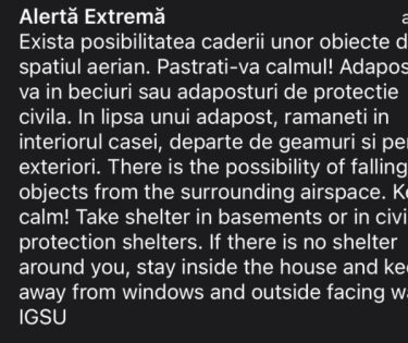 Un mesaj RO-Alert a fost emis în noaptea de marţi spre miercuri pentru zona de nord a judeţului Tulcea. Mesajul RO-Alert a fost emis după ce structurile de apărare şi securitate naţională au interceptat un posibil atac al Rusiei asupra unor obiective de pe teritoriul …