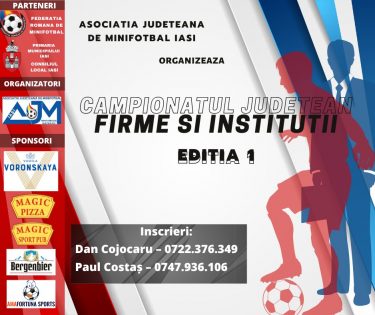 vezi stireaAsociația Județeană de Minifotbal Iași organizează prima ediție a Campionatului Județean pentru Firme și Instituții. Ce firme s-au înscris până acum