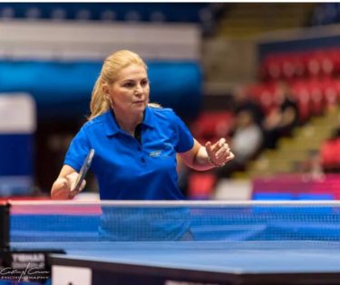 La vârsta de 63 de ani, Maria Gaftea, antrenoare și jucătoare a echipei Politehnica Iași, arată aceeași vivacitate ca la 20 de ani în fața mesei de tenis.