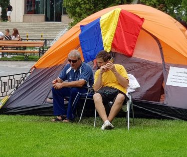 George Bratu și Valeriu Borsan la Cortul Demnității și Democrației, Iași, Piața Unirii. Protest 24 de ore din 24. Este pentru a doua zi consecutiv, duminica.Cei doi ieseni sunt nevazatori si vor ramine in Piata Unirii pina pe 10 august cind a fost anuntat un …