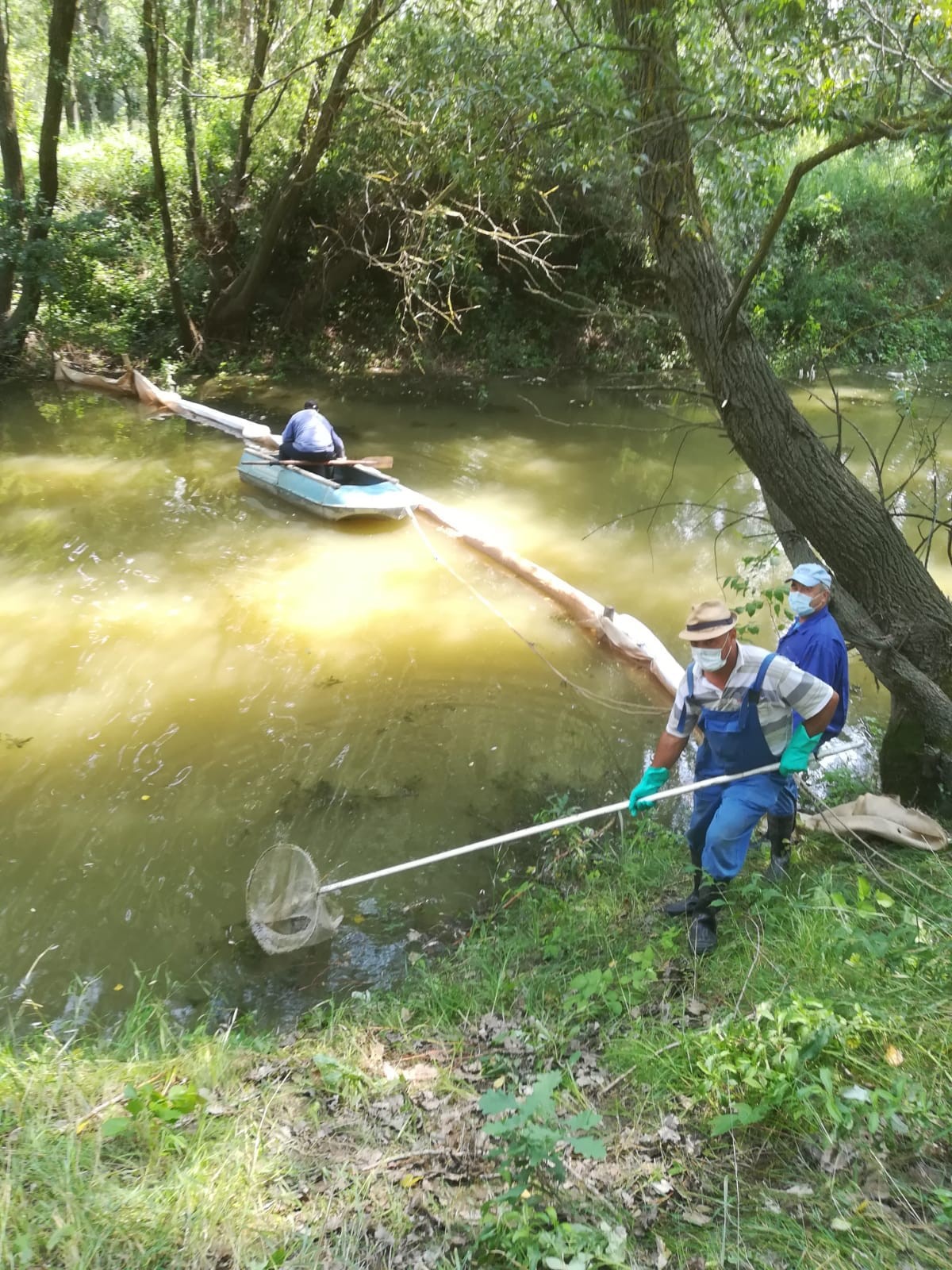 Angajaţii Sistemului de Gospodărire a Apelor Iaşi împreună cu cei de la Agenţia Naţională de Îmbunătăţiri Funciare, filiala Iaşi continuă intervenţia pentru colectarea materialului piscicol şi a algelor, pe sectorul canalului de desecare amenajat pe albia braţului vechi al râului Jijia aflat în administrarea ANIF.