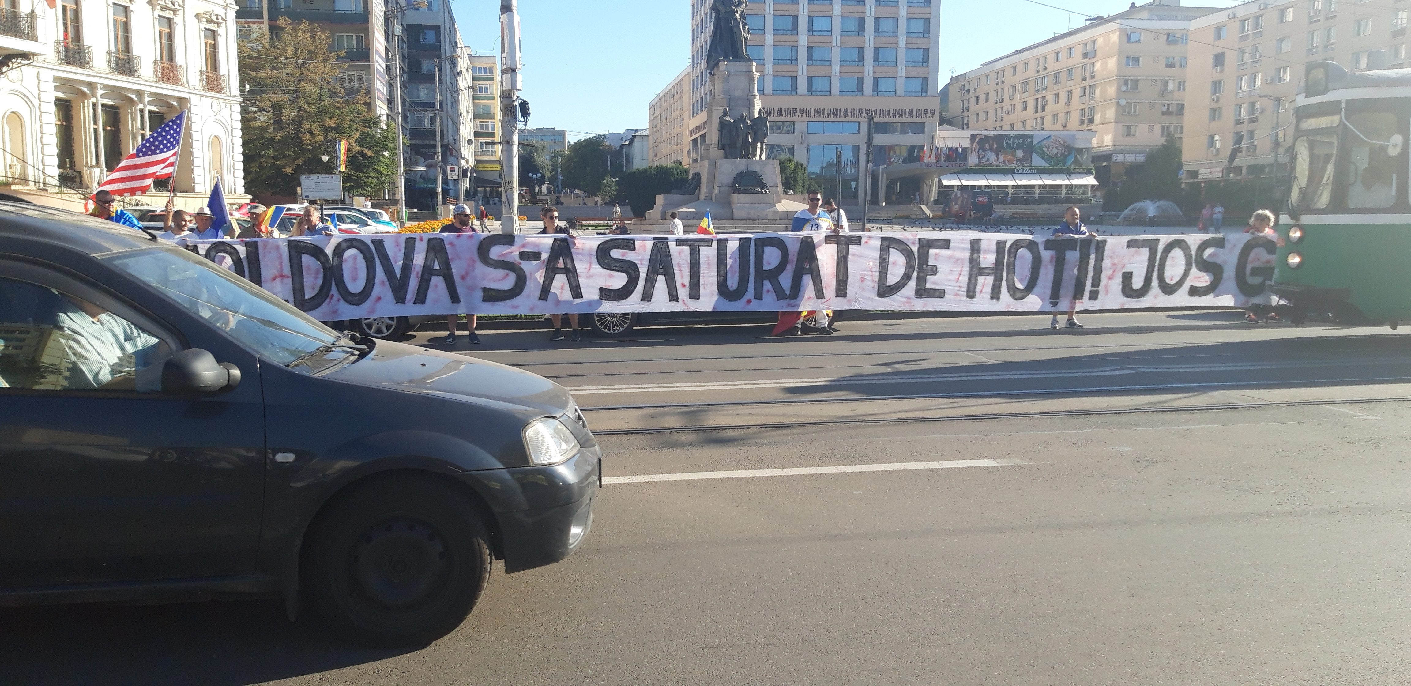 Peste 300 de mașini în coloana moldovenilor care merg spre București. Se circulă cu dificultate, spun șoferii care au precizat că sunt mulți oameni care opresc pur și simplu mașinile pentru că vor să ajungă la miting. În mașina ieșenilor a ajuns un român din Italia.