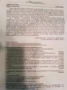 La al doilea subiect, elevii au primit tot un text la prima vedere, cu şase cerinţe, şi au avut de redactat o naraţiune de 150-200 de cuvinte în care să relateze o întâmplare petrecută în Cetatea Alba Carolina. Textul a fost selectat din revista National Geographic.