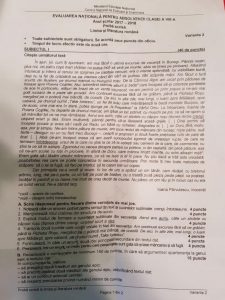 Astfel, pentru prima probă scrisă din cadrul examenului de Evaluare Națională pentru absolvenții clasei a VIII-a, anul școlar 2017-2018, susținută la disciplina Limba și literatura română a fost extrasă varianta 2, realizată după modelul stabilit de Centrul Național de Evaluare și Examinare, cu respectarea exigențelor curriculare pentru învățământul gimnazial și prevederile programei de examen.