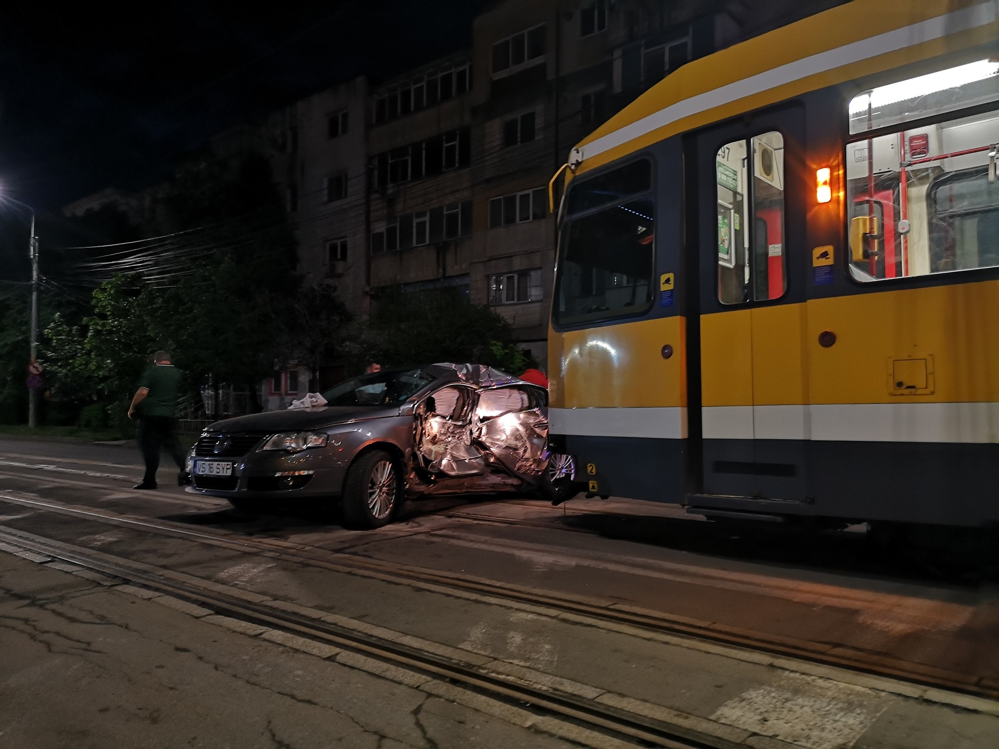 ACCIDENT GRAV în Metalurgie! Un tramvai a intrat în plin într-o mașină cu număr de Vaslui, marți dimineață, în jurul orei 04.00, în zona Metalurgie.