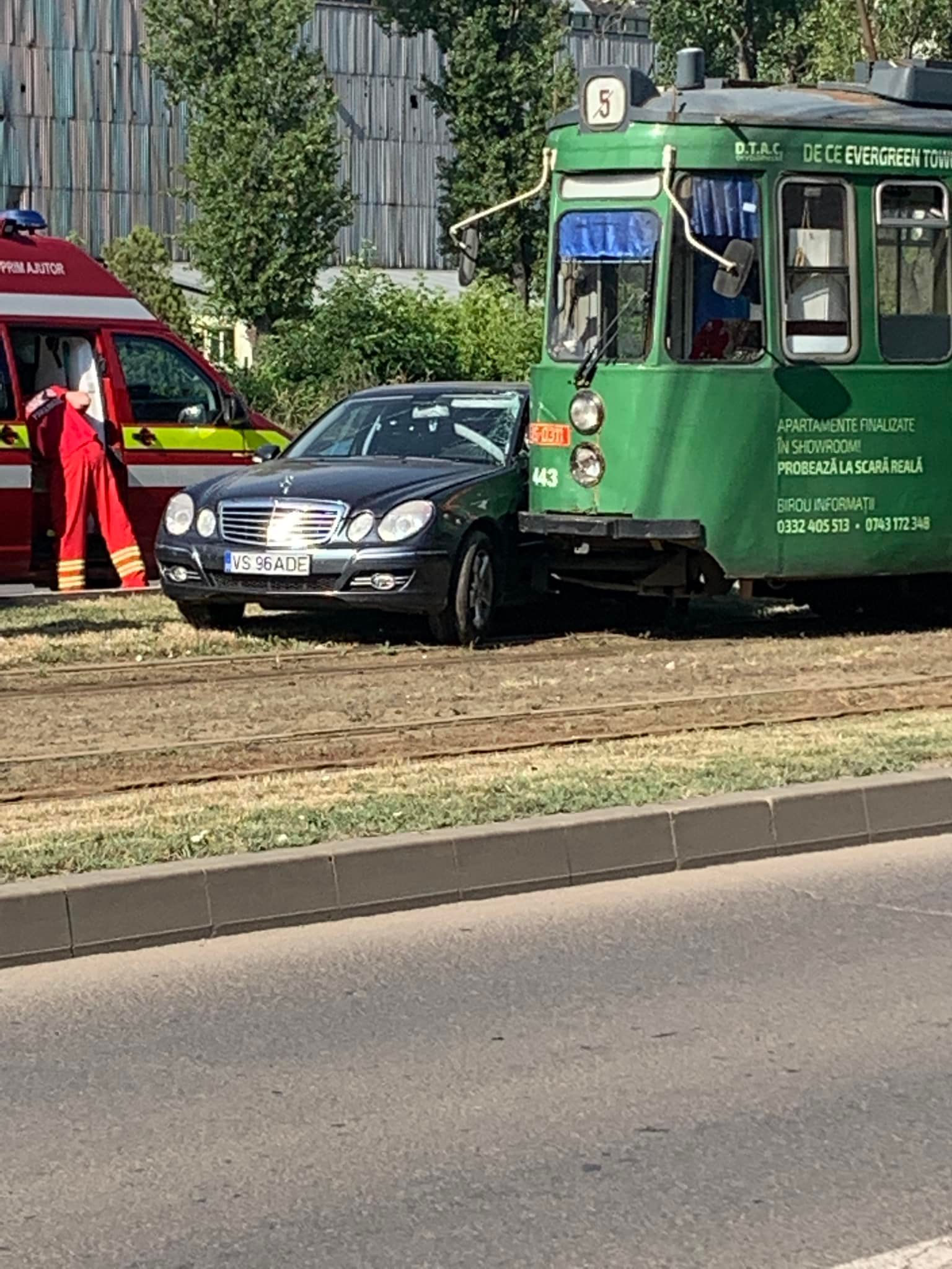 ACCIDENT pe Calea Chișinăului, în această dimineață! Un tramvai a izbit în plin un Mercedes cu număr de Vaslui