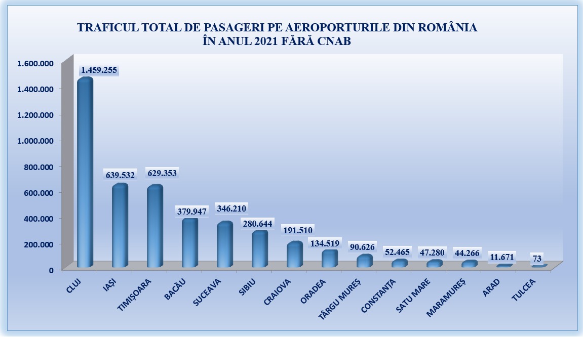 Conform datelor de trafic transmise de Autoritatea Aeronautică Civilă Română, Aeroportul Internațional Iași se află pe locul doi în topul aeroporturilor regionale din țară, după cel din Cluj-Napoca. Este pentru prima dată când Aeroportul Iași reușește această performanță, în ciuda restricțiilor impuse de pandemie, devansându-l cu 10.179 de pasageri pe cel din Timișoara.