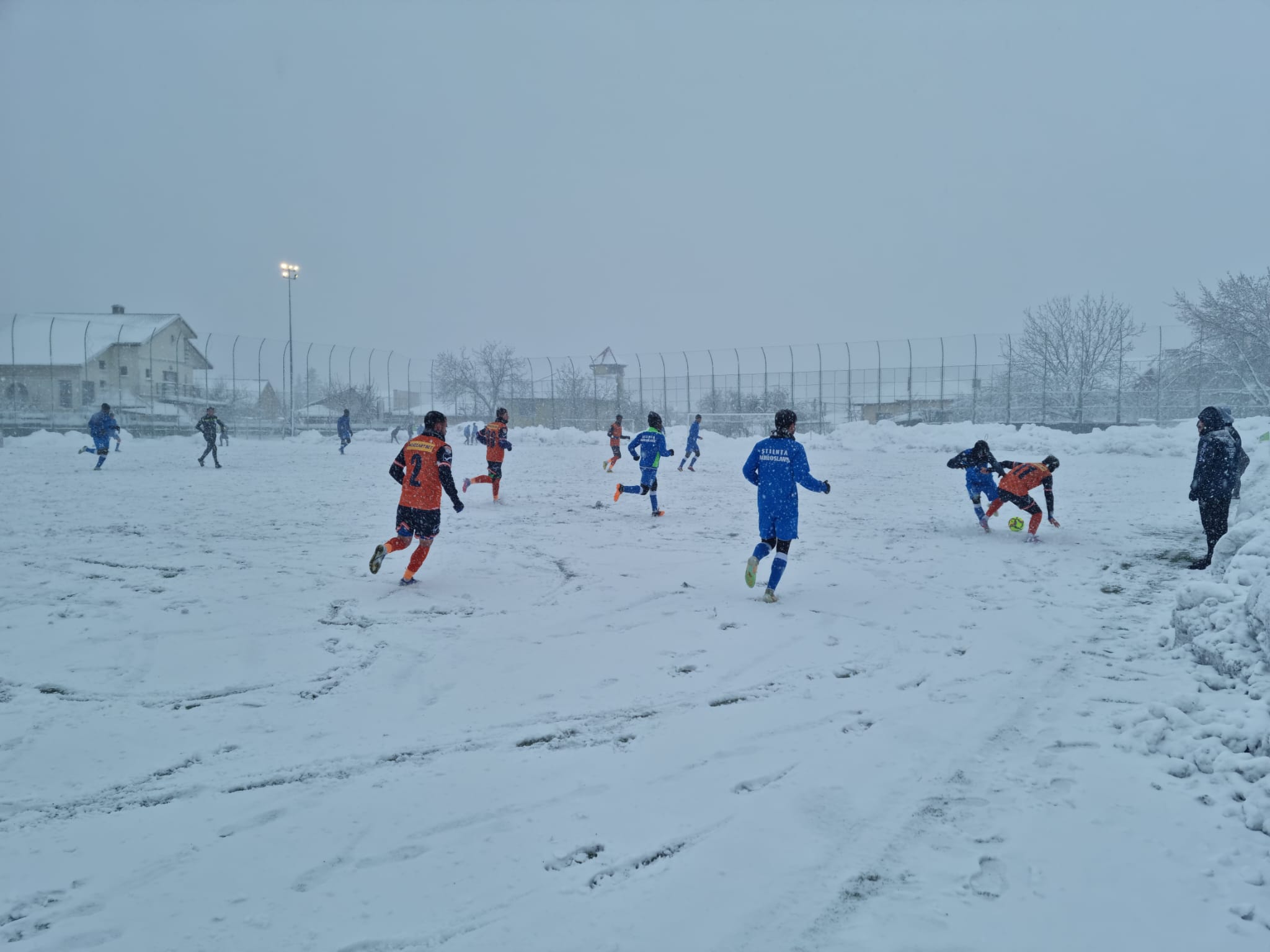În ciuda viscolului puternic care s-a abătut peste Iași, miercuri a fost agitație mare pe terenul sintetic din Complexul Emil Alexandrescu din Copou. Curățat de zăpadă în cursul dimineții, terenul a fost gazda a două meciuri. Primul, cel oficial, contând pentru semifinalele grupelor Cupei României la juniori, s-a disputat cu o oră întârziere, însă amicalul dintre Poli Iași și Știința Miroslava a fost întrerupt de viscol, după o oră de joc.