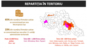 Un alt motiv al necesității implementării unui model de stimulare a antreprenoriatului local îl găsim în datele privind amplasării societăților. Faptul că 88% dintre agenții economici ieșeni sunt localizați în Municipiul Iași și alte 11 localități din cele 98 ale județului ne arată perspectiva unui decalaj de dezvoltare pe care, dincolo de efortul de a duce inițiativele de dezvoltare de noi parcuri industriale și în afara zonei metropolitane a Iașului, trebuie să îl abordăm prin stimularea și sprijinirea antreprenoriatului local.