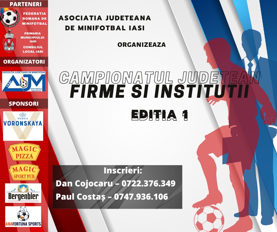 Asociația Județeană de Minifotbal Iași organizează prima ediție a Campionatului Județean pentru Firme și Instituții. Ce firme s-au înscris până acum