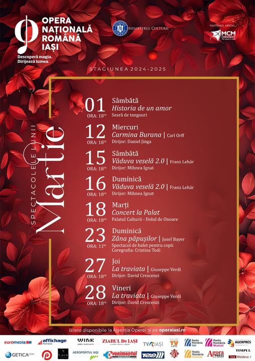 Azi se pun în vânzare biletele de intrare la spectacolele Operei Iași din luna martie
