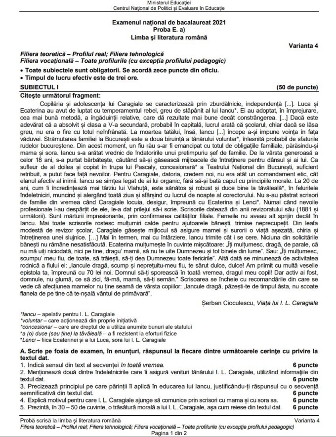 Bacalaureat: rezolvarea subiectelor la Limba și literatura română