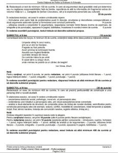 De la ora 7:30 elevii au ajuns în sălile de examen. Varianta extrasă a fost cea cu numărul patru. La Subiectul I au avut un text la prima vedere, Viața lui I.L. Caragiale, la punctul B au avut de conceput un text argumentativ: „greutățile vieții pot îngreuna sau nu realizarea responsabilităților față de familie”.