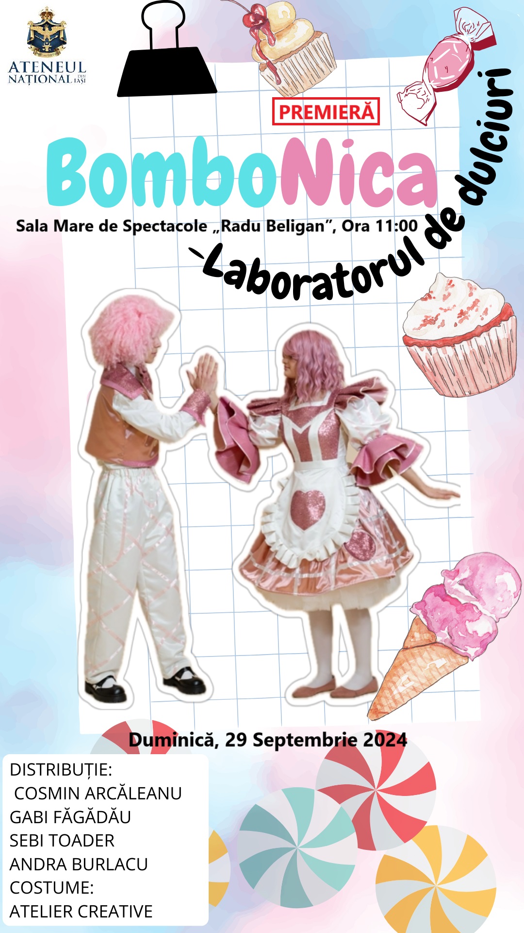 Spectacolul BomboNica – Laboratorul de dulciuri este a opta premiera de teatru din acest an. Încă din anul 2016, Ateneul ieșean colaborează cu trupa Marionnette Show, prezentând peste zece spectacole de teatru pentru copii.