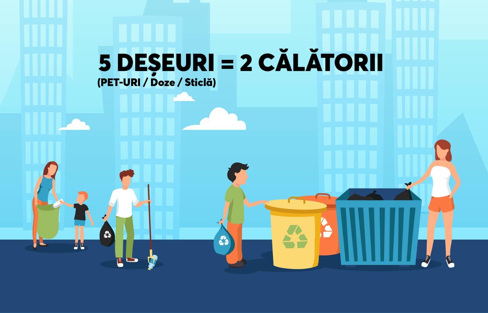 Ieșenii, alături de alți locuitori din 64 de orașe din toate județele din țară, pot călători astăzi cu mijloacele de transport în comun în schimbul a 5 deșeuri.