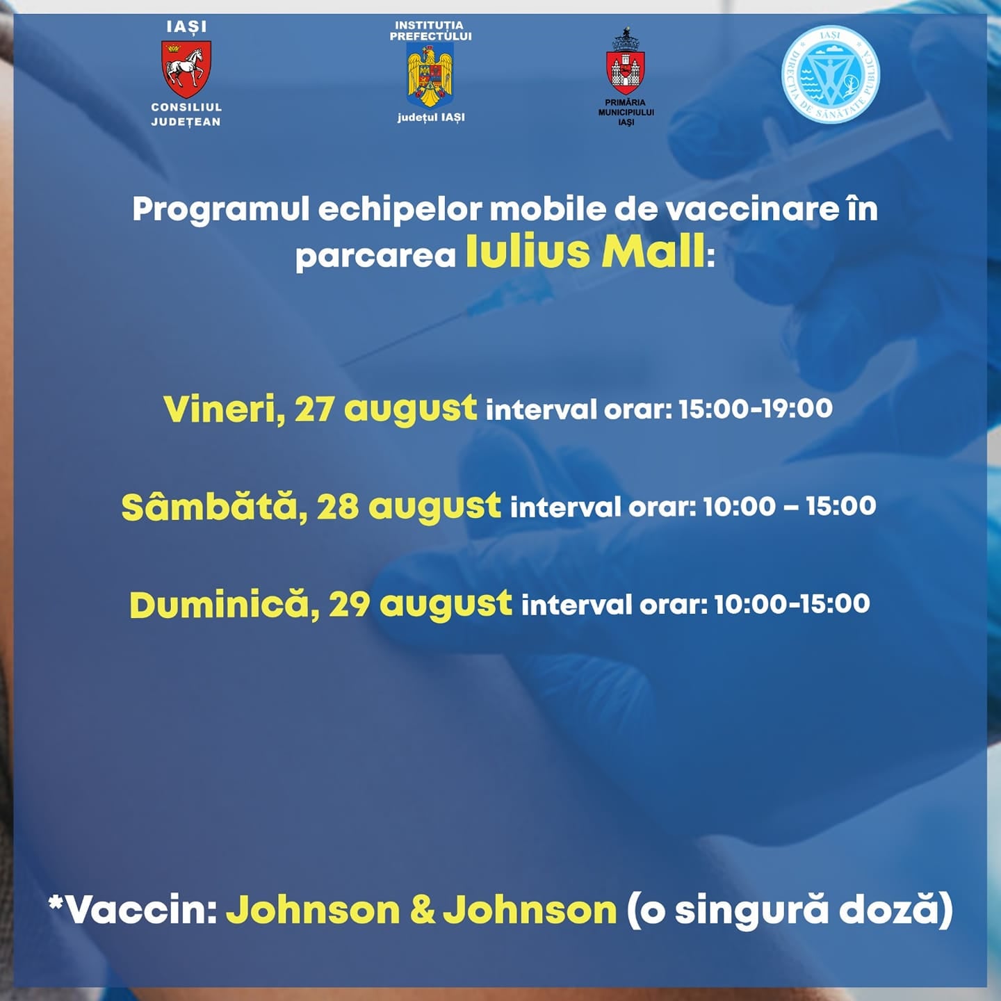 Centru de vaccinare în Parcarea Iulius Mall, de vineri până duminică. Serul folosit este Johnson & Johnson