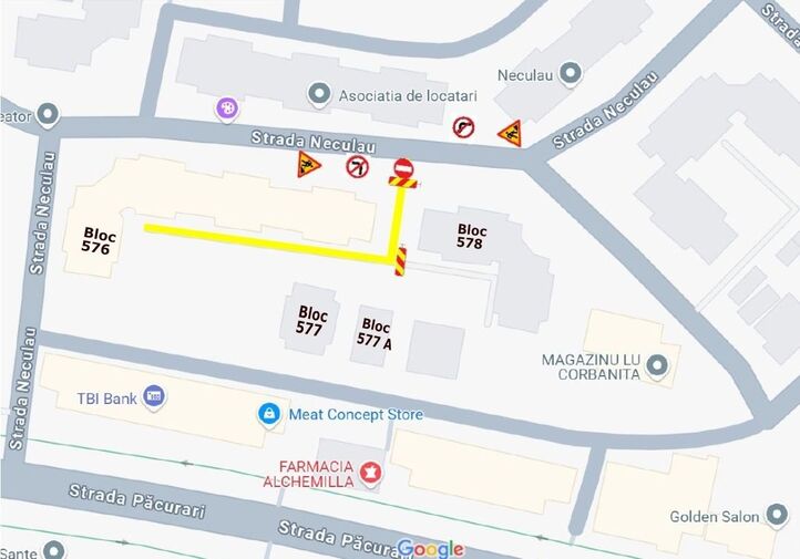 În intervalul 21 – 31 martie, între orele 08:00 și 16:00, circulația va fi suspendată pe aleea din spatele blocului 577, situat pe strada Neculau nr. 8, iar in perioada 24-31 martie, între orele 08:00 – 16:00, este închisă circulaţia pe aleea din spatele blocurilor 584, 585, 586, 587 situate pe str. Păcurari nr. 124 – 142.