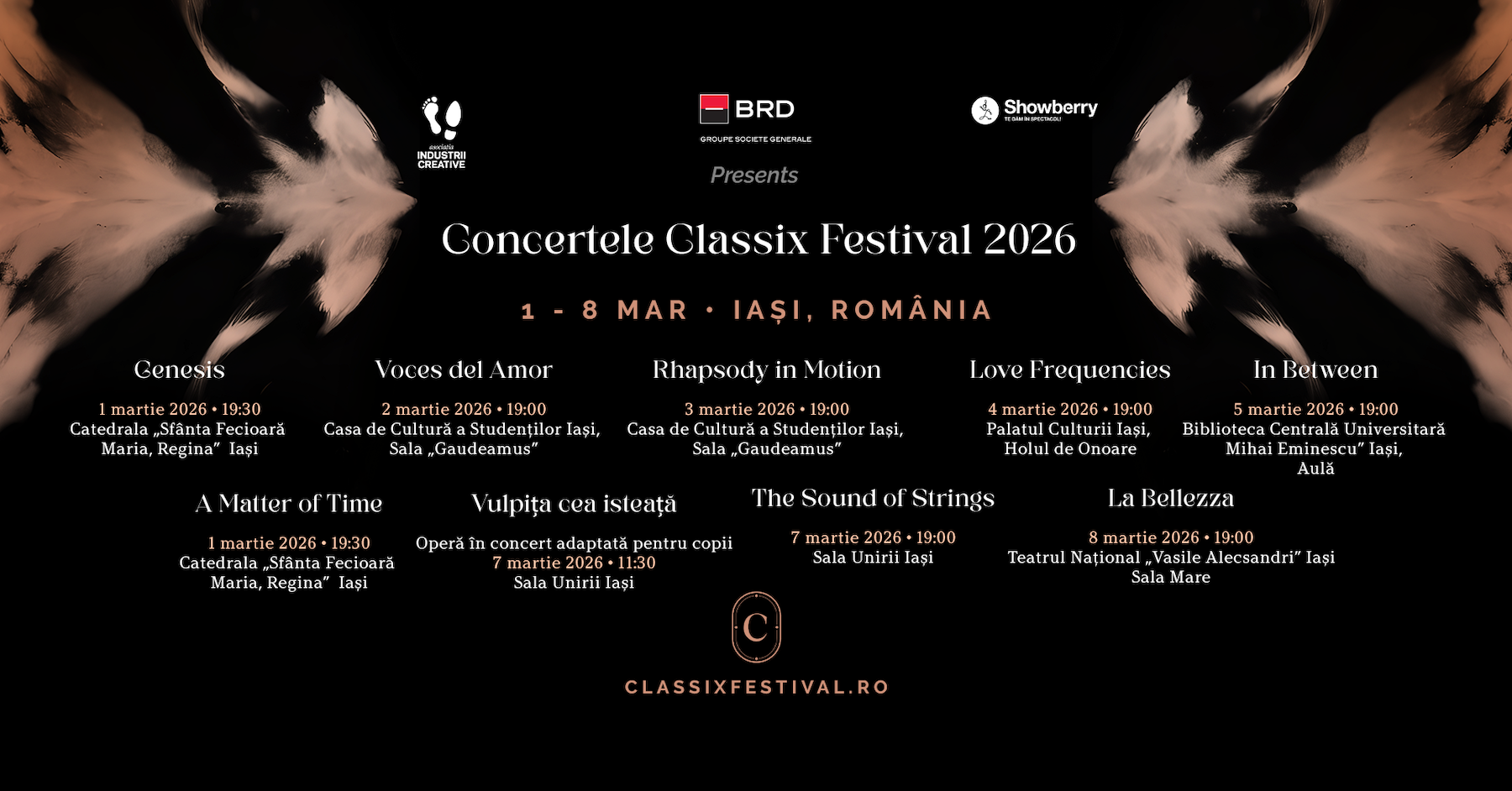 Organizat de Asociația Industrii Creative și Showberry, Classix Festival va avea loc la Iași în perioada 1–8 martie 2026, iar biletele și abonamentele sunt disponibile pe site-ul oficial al festivalului.