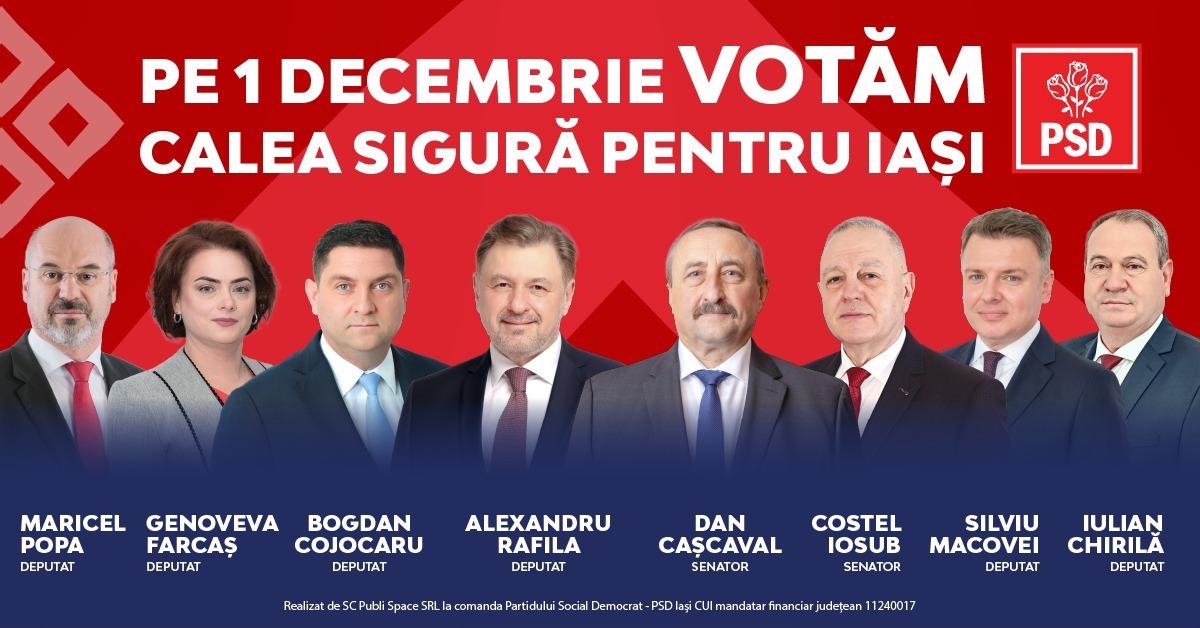 Votul pentru PSD este votul pentru continuarea marilor proiecte începute la Iași și în regiunea Moldovei: autostrăzile A7 și A8, Spitalul Regional de Urgență, finanțarea puternică a Sănătății și Educației, modernizarea comunităților rurale.