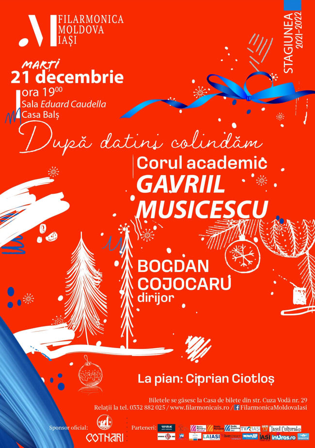 Marți, 21.12.2021, începând cu ora 19, Corul Academic „Gavriil Musicescu” va susține un concert de colinde, sub titlul După datini colindăm.