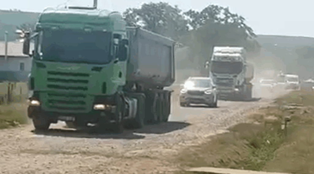 De ani buni, peste 50 de familii din satul Hoișești, comuna Dumești respiră munți întregi de praf din cauza șoferilor de mașini și camioane care evită dopul rutier care se creează zilnic la Podu Iloaiei.