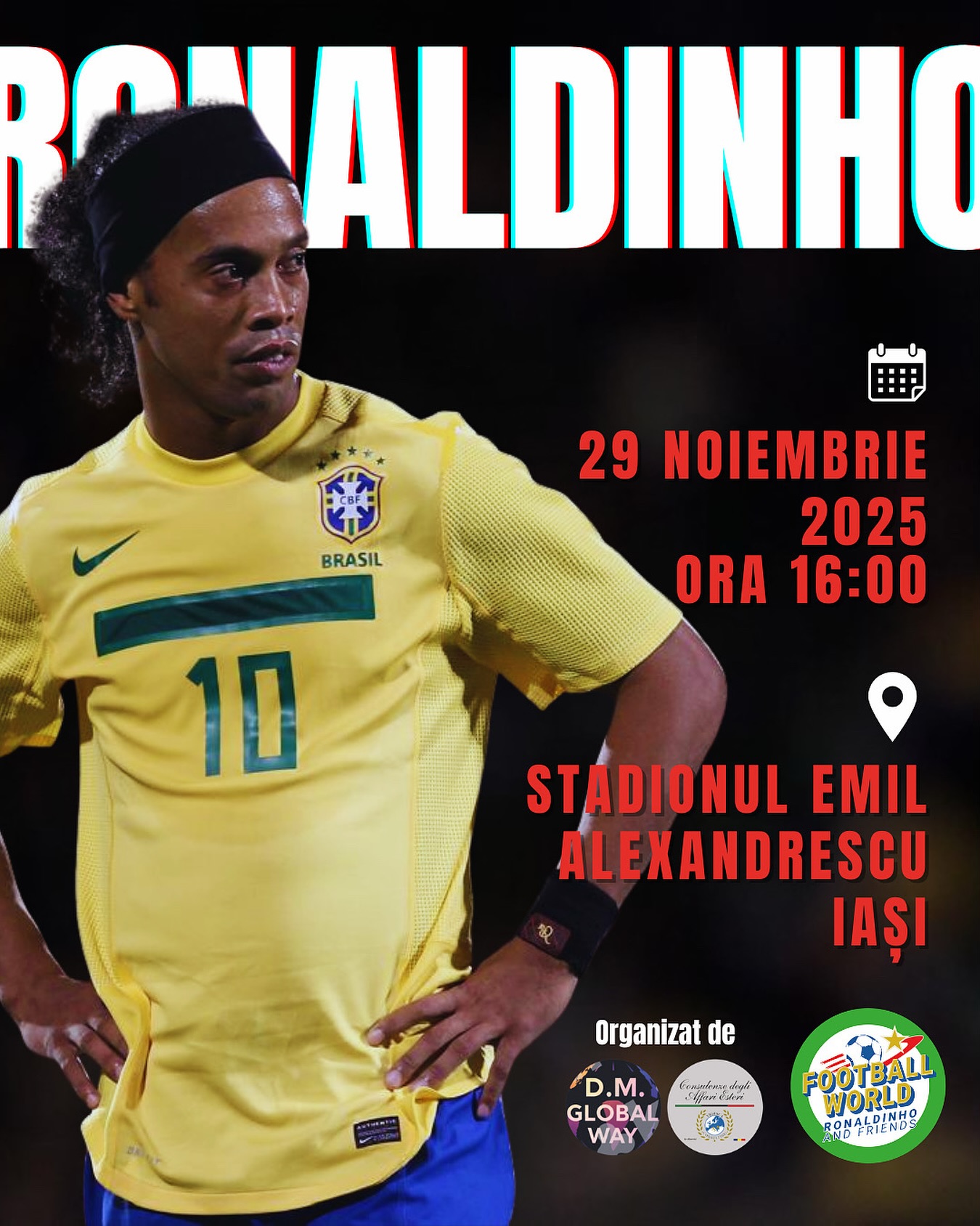 Cu ceva mai mult de două luni înainte de meciul demonstrativ al lui Ronaldinho, organizatorii italieni ai evenimentului programat în Copou, pe 29 noiembrie, au revenit cu noi informații privind show-ul de la Iași.
