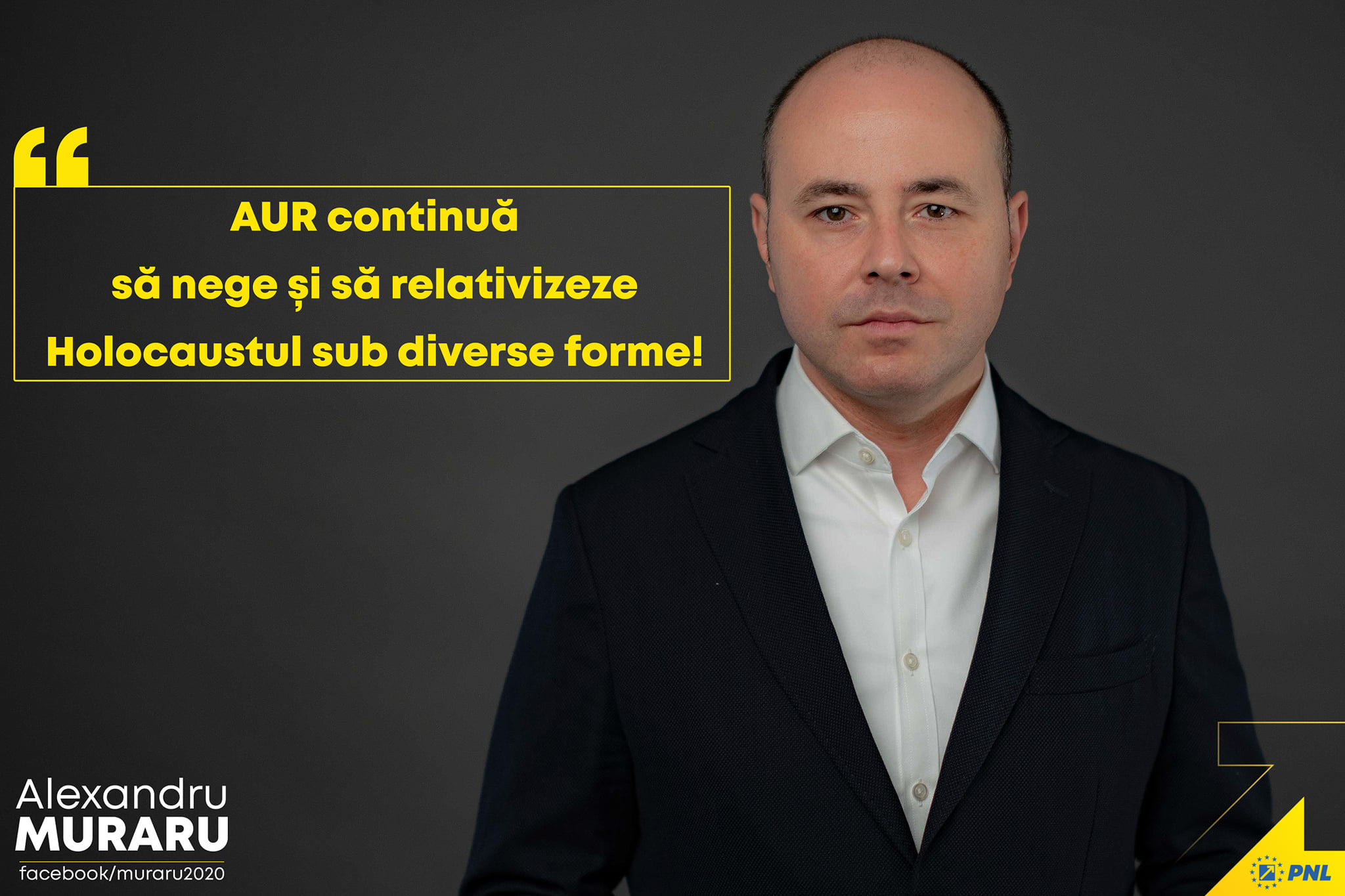 Alexandru Muraru, deputat PNL și Reprezentant Special al Guvernului pentru Combaterea Xenofobiei și Antisemitismului, a dat o declarație de presă, via Facebook, conform căreia AUR continuă să nege și să relativizeze Holocaustul.