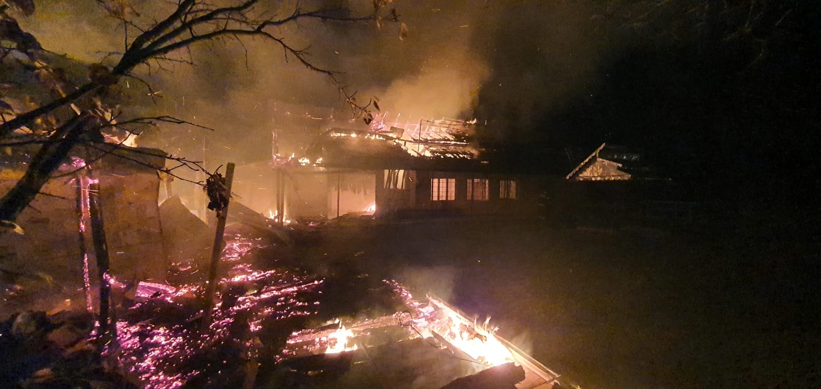 Al doilea incendiu este încă activ. Aici arde o singură casă. Dar din declarațiile vecinilor reiese că ar fi o posibilă victimă,anume proprietarul.