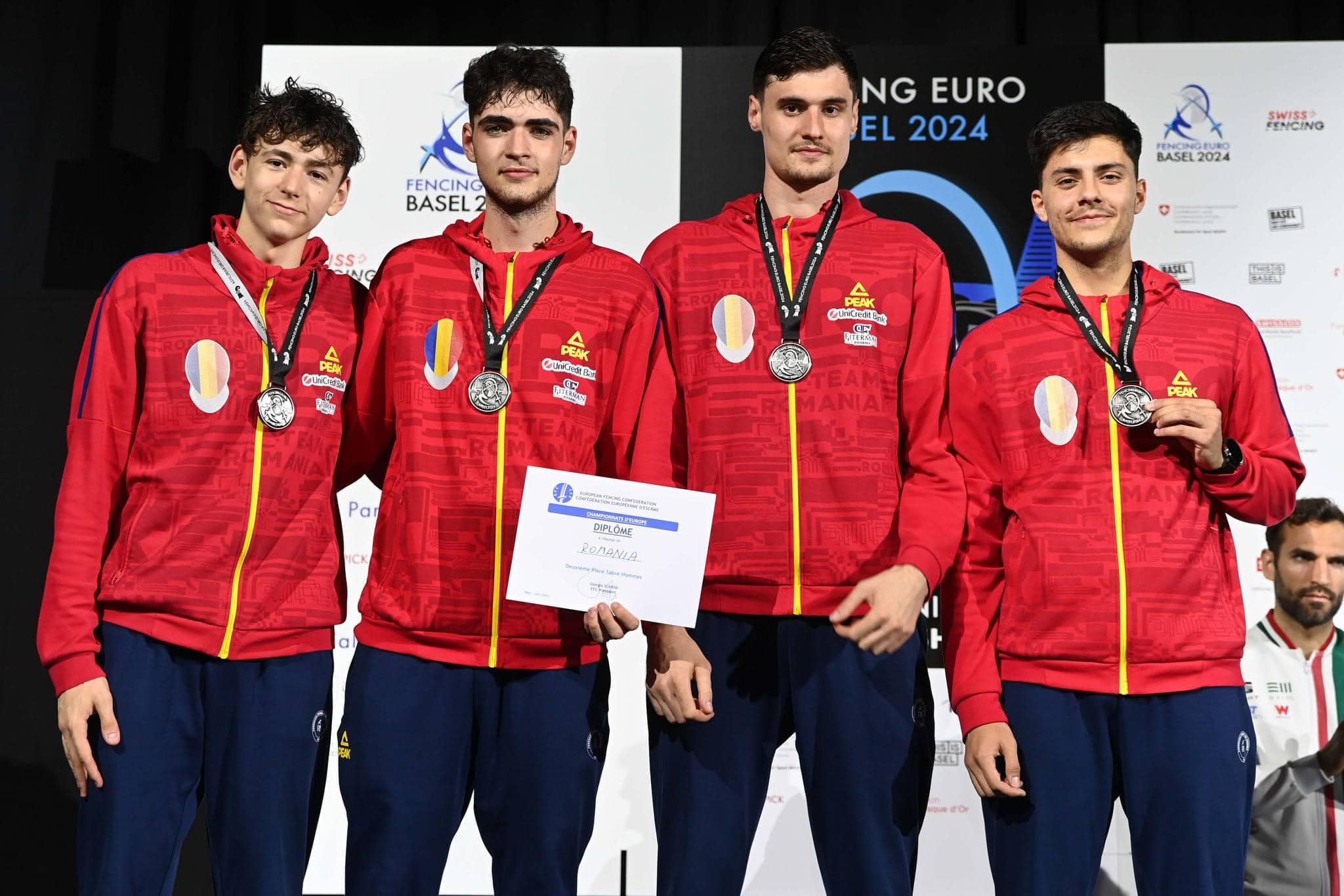 Echipa masculină de sabie a României a câştigat duminică medalia de argint a probei în cadrul Campionatului European de Scrimă de la Basel.