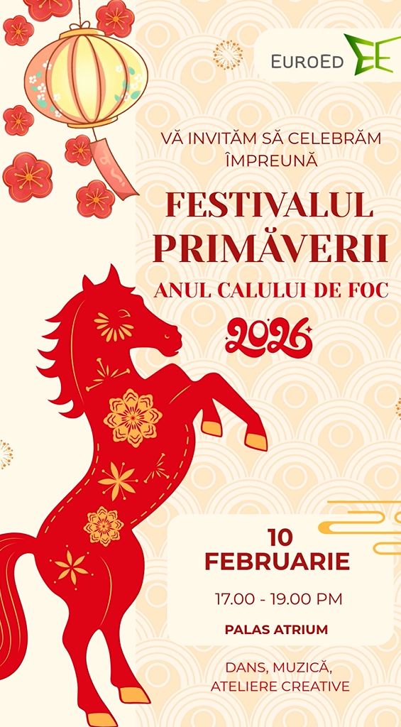Anul Nou Chinezesc, sau Sărbătoarea Primăverii, este cea mai importantă sărbătoare tradițională chineză. Anul Calului de Foc este special în zodiacul chinezesc, deoarece se repetă doar o dată la 60 de ani. În 2026, Calul se combină cu elementul Foc, generând o energie puternică, dinamică și plină de transformări. Elevii și profesorii EuroEd invită ieșenii astăzi, de la ora 17:00, la Atrium, Palas Iași, la un spectacol al tradițiilor orientale.