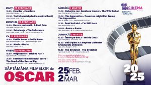 Cu The Brutalist vom încheia această retrospectivă a filmelor de Oscar, duminică la data de 2 martie de la ora 18, pentru că e un film care are aproximativ 4 ore, cu o pauză de 15 minute la mijlocul acestuia pentru a crea un confort și mai mare. Bineînțeles, în toată această selecție nu putea lipsi și The Apprentice, povestea originii lui Trump, un film în care îl vedem pe Sebastian Stan, actorul american de origine română, nominalizat la categoria cel mai bun actor în rol principal. Filmul se poate vedea pe 1 martie de la ora 15, așadar veniți să îl vedeți pentru că atunci când a intrat în cinematografie acest film a fost trecut cu vederea, dar acum a stârnit interes mai ales că avem acolo și pe Sebastian Stan, care recent a câștigat și un Glob de Aur pentru A Different Man.