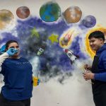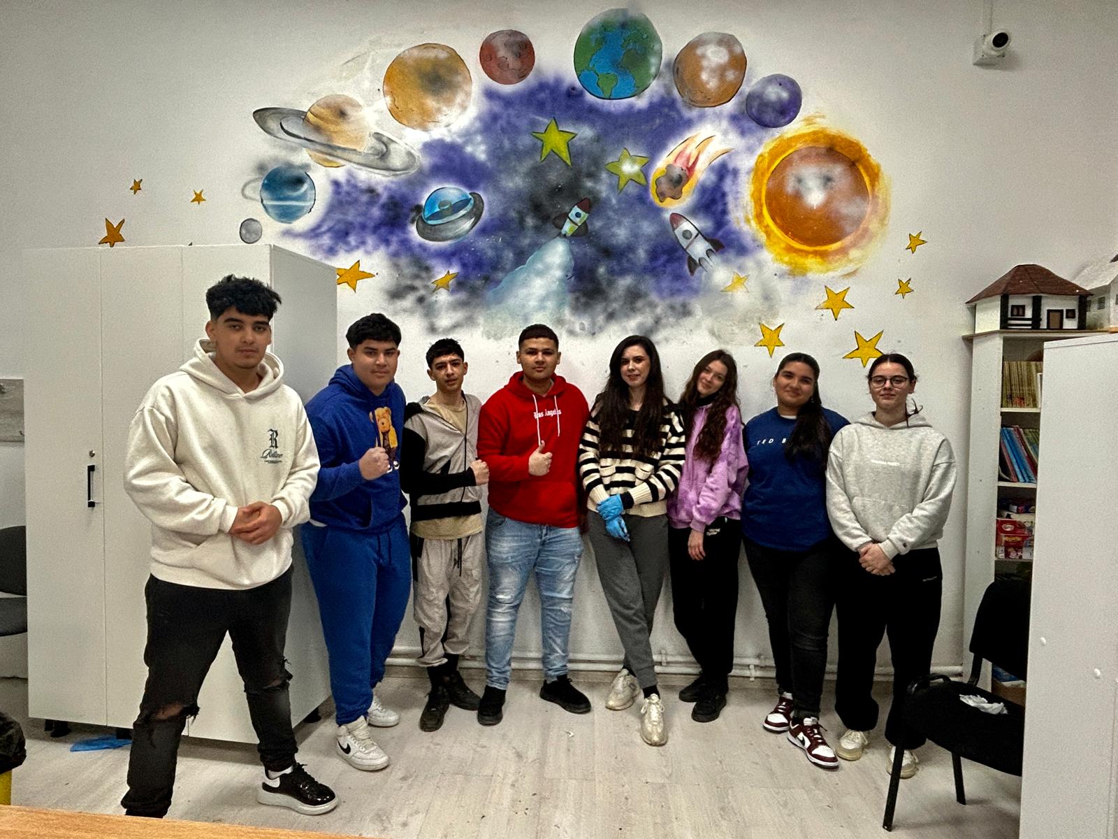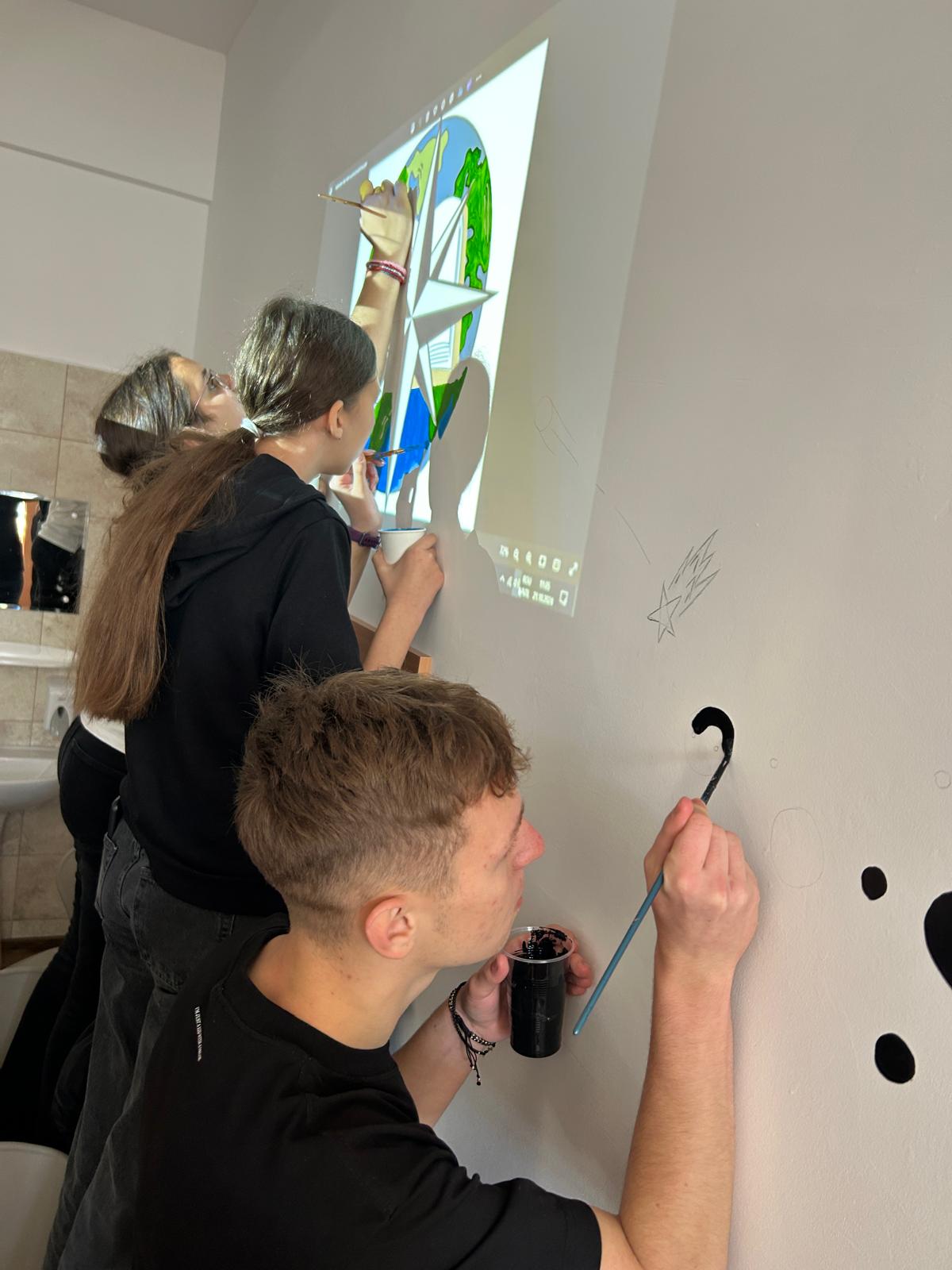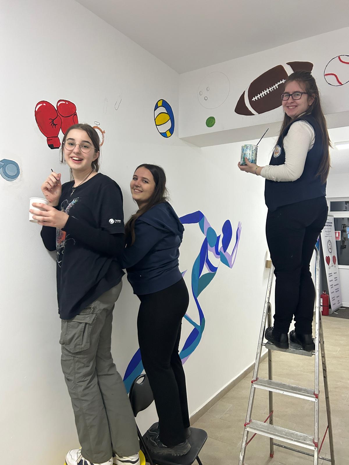 Am fost pasionată de picturile murale de la început, deși nu avusesem o activitate constantă în acest sens. Am avut însă bucuria de a o întâlni pe doamna director care m-a încurajat din start să pictez un perete în școală. Mi-am spus: „Ok, hai să încerc!”.Doamna director mi-a sugerat să implic și elevii. Eu, fiind artist la bază, eram obișnuită să lucrez singură, dar ulterior am descoperit un sprijin real din partea lor. Mi-am dat seama că pot colabora cu mulți elevi deodată, că îi pot coordona ușor și că astfel terminăm lucrările mult mai rapid.