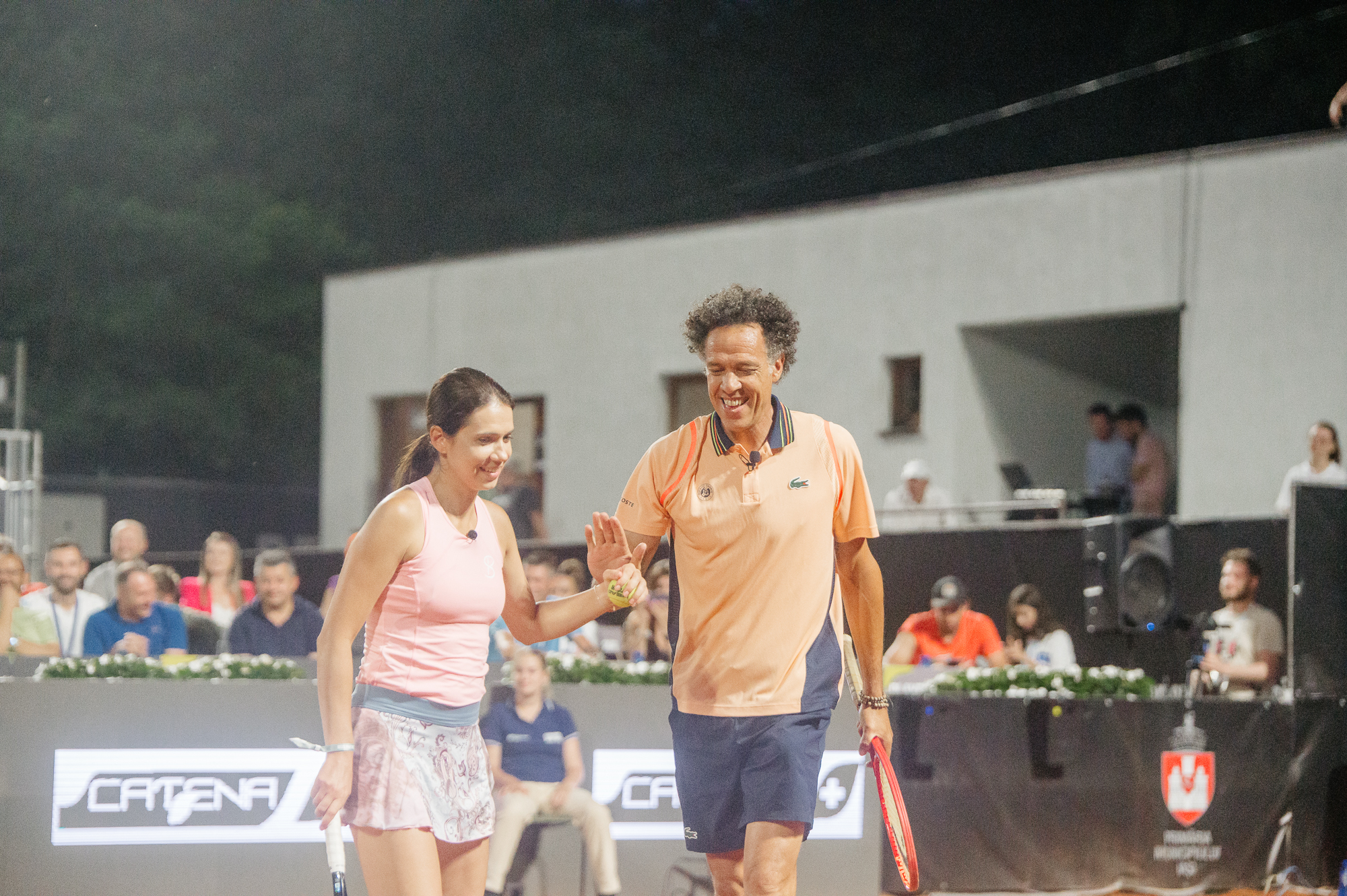 După desemnarea ultimilor sfert-finaliști la simplu și a semifinaliștilor în proba de dublu, spre seară au intrat pe teren ”finaliștii” de la dublu mixt, pentru un meci demonstrativ de gală.